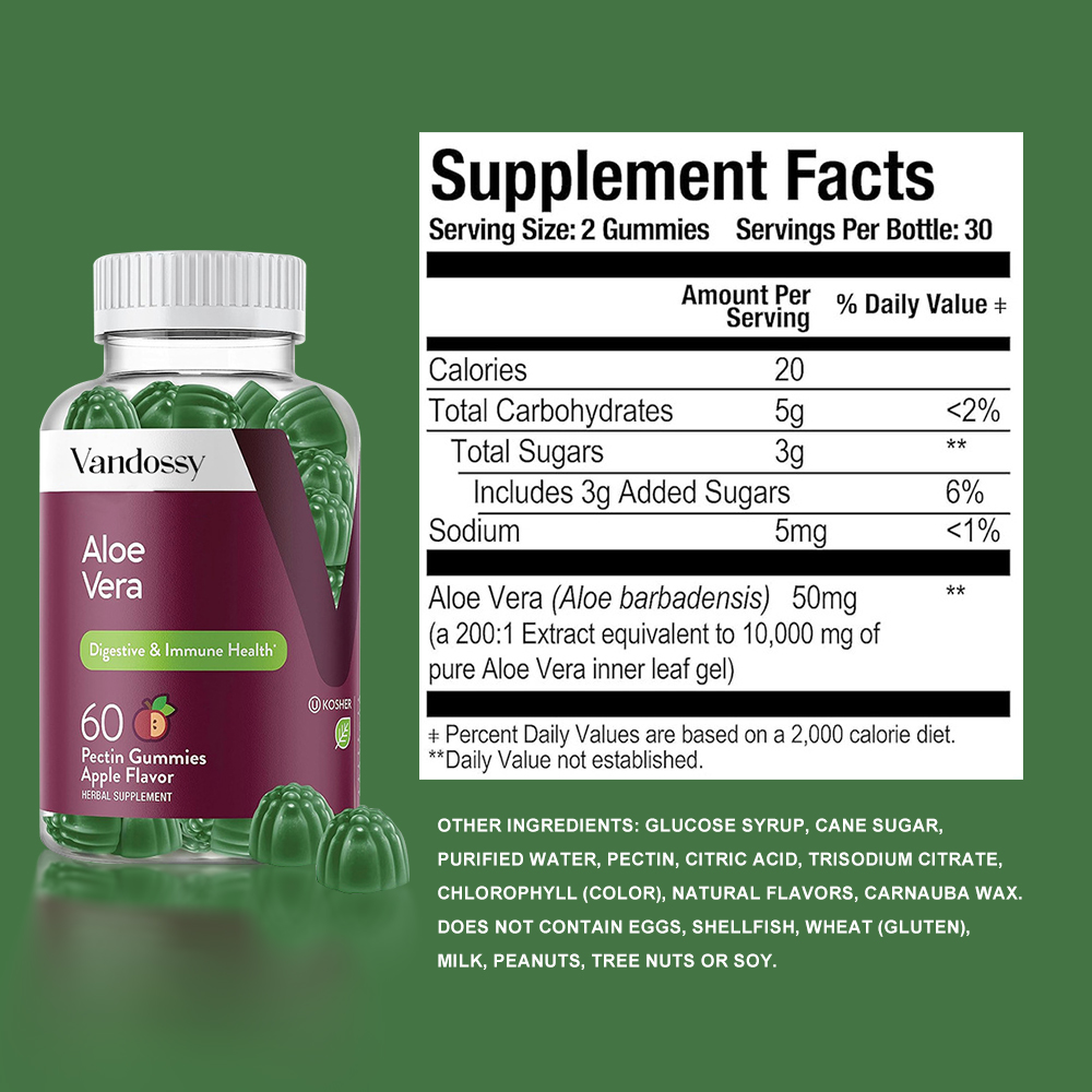 Premium Aloe Vera Gummies featuring cold-processed inner-leaf extract for digestive and skin health. Produced in certified facilities with bioactive standardization, flavor masking, and compliant packaging. Designed for brands merging internal wellness with topical beauty benefits.
